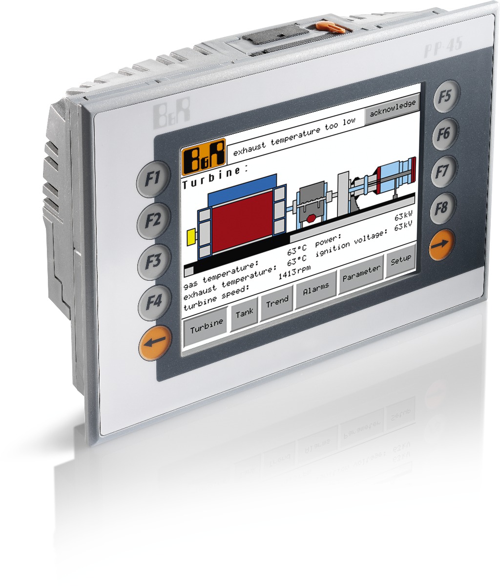 Using the optional interface cards, it is also possible to connect other B&R products or even to integrate the PP45 into control systems from other manufacturers. All components are contained within a compact housing with a 5.7" QVGA LCD display.
