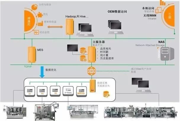 物联网将成为下一个热点,贝加莱一直走在技术的前沿,本次CIPM,贝加莱将展示其全新为IIoT时代而提前布局的方案与产品。尤其为制药工业提供的集成的平台: 通过机器的数据采集,贝加莱将机器的数据通过控制器、OrangeBOX节点采集,到APROL共享数据平台,然后为智能分析软件如Hadoop、Hive等进行分析、报告、优化、动态监测,也可以通过无线及本地网络为本地控制中心所监控。