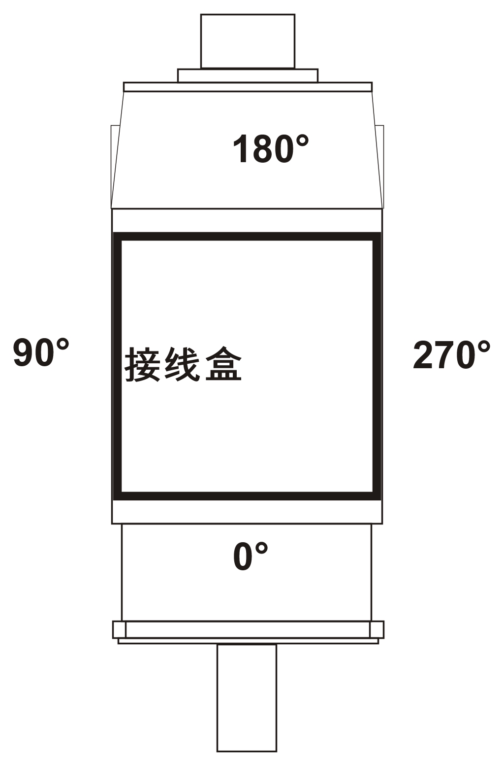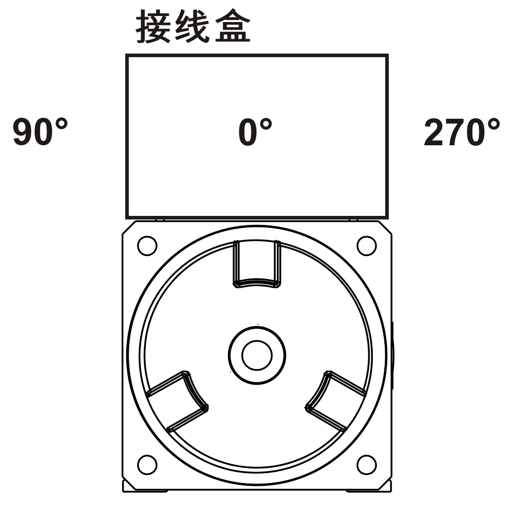 8KS三相同步电机一般使用接线盒实现电源连接。接线盒位置在“顶部”,而电缆出线在“右侧”(相当于270°)。
