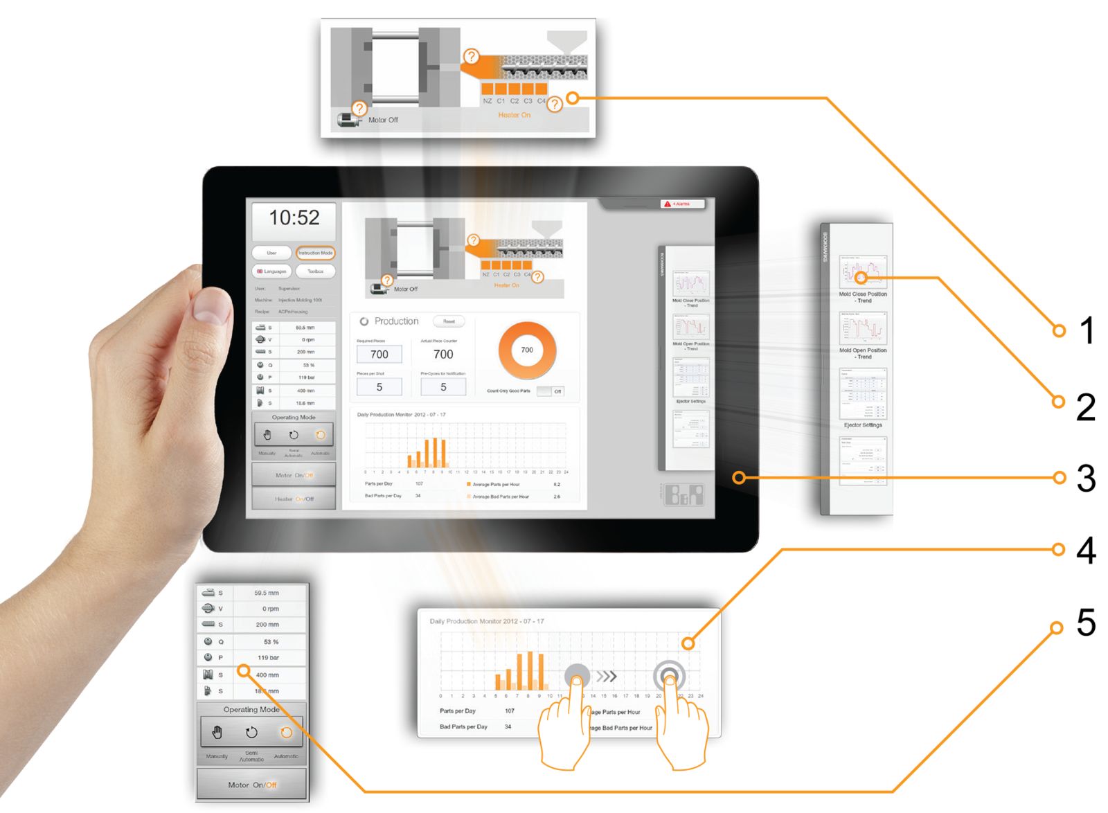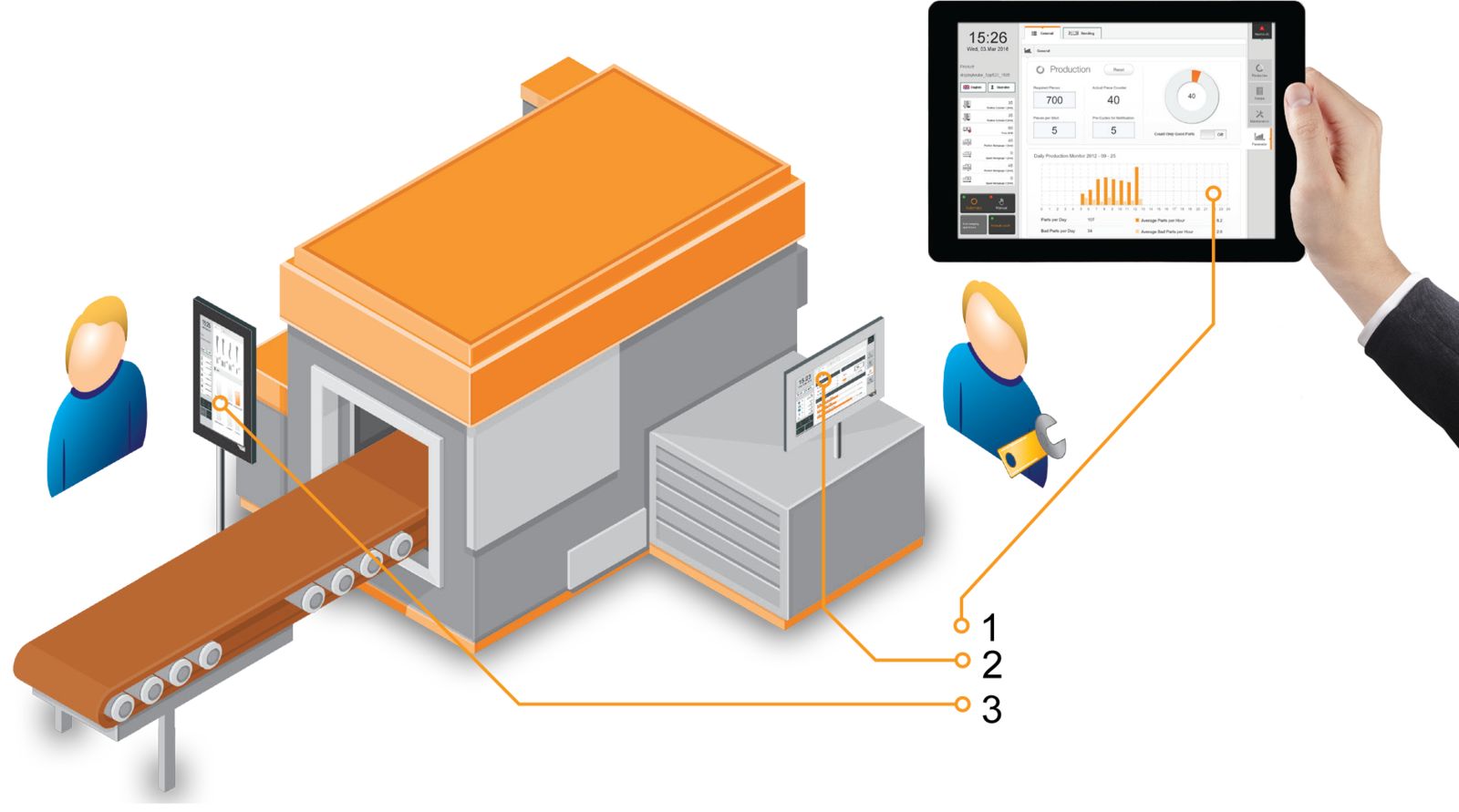 不同用户需要访问不同内容。mapp View使你能够实现基于角色的视图,不必将其编入机器应用程序。这些定制化屏幕甚至还可以在不同的设备上同时查看。